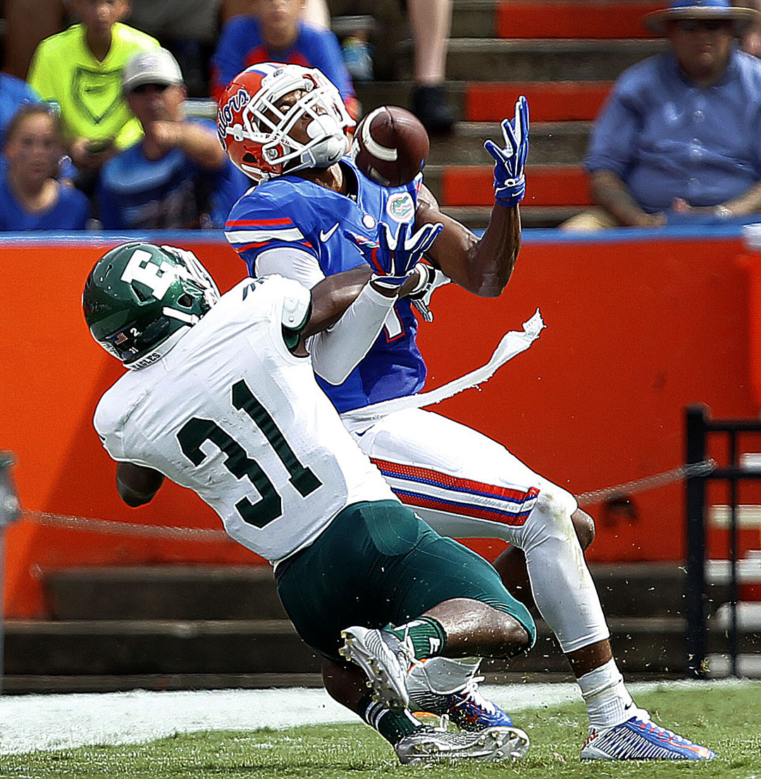 Saturday gave photographers a glimmer of hope to finally get offensive photos of the Gators. They blanked Eastern Michigan 65-0. Sure, the Eagles aren’t an SEC powerhouse, but it was nice to see Florida throw the ball farther than seven yards or have a running back break loose for a long touchdown.